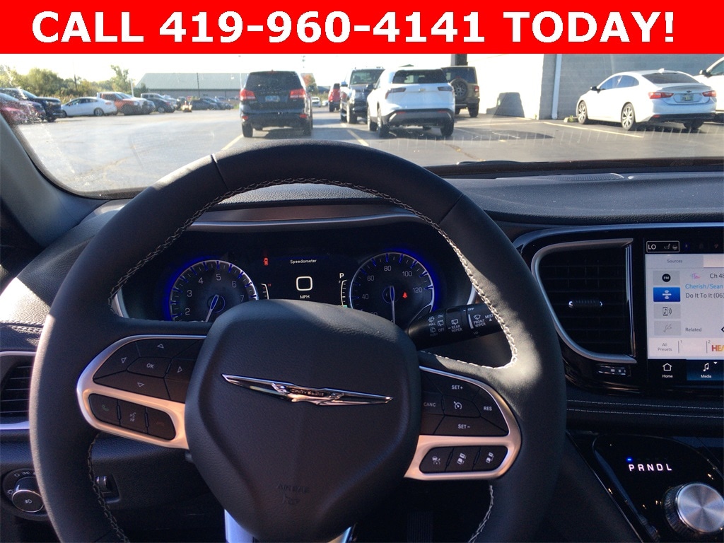 10.1" Touchscreen Display, 100th Anniversary Buzz Model Graphic, 100th Anniversary Buzz Model Package, 17" x 7.0" Aluminum Wheels, 3.25 Axle Ratio, 360 Surround View Camera System, 3rd row seats: split-bench, 4-Wheel Disc Brakes, 4G LTE Wi-Fi Hot Spot, 6 Speakers, ABS brakes, Air Conditioning, Alloy wheels, AM/FM radio: SiriusXM, Apple CarPlay, Apple CarPlay/Android Auto, Auto-dimming Rear-View mirror, Automatic temperature control, Black Day Light Opening Moldings, Black Seats, Brake assist, Bumpers: body-color, Caprice Leatherette Bucket Seats, Compass, Connectivity - US/Canada, Delay-off headlights, Disassociated Touchscreen Display, Driver door bin, Driver vanity mirror, Driver's Seat Mounted Armrest, Dual front impact airbags, Dual front side impact airbags, Electronic Stability Control, Emergency communication system: Chrysler Connect, For Details, Visit DriveUconnect.com, Four wheel independent suspension, Front anti-roll bar, Front Bucket Seats, Front dual zone A/C, Front fog lights, Front reading lights, Fully automatic headlights, Garage door transmitter, Google Android Auto, GPS Antenna Input, Granite Crystal Exterior Accents, Granite Crystal Exterior Badging, Heated door mirrors, Heated front seats, Heated steering wheel, Illuminated entry, Integrated Active Noise Cancellation, Integrated Center Stack Radio, Knee airbag, Low tire pressure warning, Memory seat, Occupant sensing airbag, Outside temperature display, Overhead airbag, Overhead console, Panic alarm, ParkSense Front/Rear Park Assist w/Stop, ParkView Rear Back-Up Camera, Passenger door bin, Passenger seat mounted armrest, Passenger vanity mirror, Power door mirrors, Power driver seat, Power Liftgate, Power steering, Power windows, Premium Fascia-Upper/Lower Grilles/Granite Crystal, Premium Rear Fascia Granite Crystal, Quick Order Package 27L, Radio data system, Radio: Uconnect 5 w/10.1" Display, Rain sensing wipers, Rear air conditioning, Rear reading lights, Rear window defroster, Rear window wiper, Reclining 3rd row seat, Remote keyless entry, Safety Sphere, Security system, Speed control, Split folding rear seat, Spoiler, Steering wheel mounted audio controls, Tachometer, Telescoping steering wheel, Tilt steering wheel, Touring Suspension, Traction control, Trip computer, Turn signal indicator mirrors, USB Host Flip, Variably intermittent wipers, Voltmeter, Wheels: 20" x 7.5" Luster Gray Aluminum.