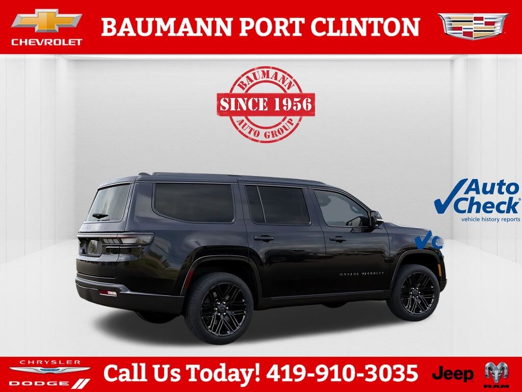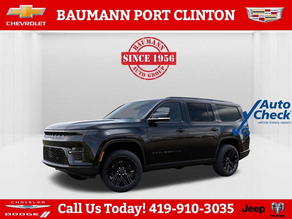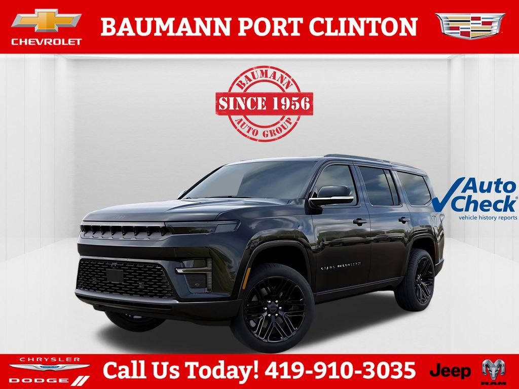 CALL 419- 732 -3148 or 419- 960- 4141, 118 Mph Maximum Speed Calibration, 19 Speaker McIntosh Audio System, 2nd Row Manual Window Shades, 3 Panel Sunroof, 3.55 Rear Axle Ratio, 3rd row seats: bench, 4-Wheel Disc Brakes, 9 Speakers, ABS brakes, Air Conditioning, Alloy wheels, AM/FM radio: SiriusXM with 360L, Anti-whiplash front head restraints, Apple CarPlay/Android Auto, Audio memory, Augmented HUD, Auto Adjust in Reverse Exterior Mirrors, Auto High-beam Headlights, Auto-dimming door mirrors, Auto-Dimming Exterior Driver Mirror, Auto-dimming Rear-View mirror, Auto-leveling suspension, Automatic temperature control, Black Appearance Package, Black Exterior Accents, Brake assist, Bumpers: body-color, Cargo Cover, Cluster 12" TFT Color Display, Compass, Delay-off headlights, Driver door bin, Driver vanity mirror, Driver's Seat Mounted Armrest, Dual front impact airbags, Dual front side impact airbags, Electronic Stability Control, Emergency communication system: Jeep Connect, Exterior Mirrors Approach Lamps, Exterior Mirrors with Memory, Exterior Mirrors with Supplemental Signals, Exterior Parking Camera Rear, Four wheel independent suspension, Front anti-roll bar, Front Bucket Seats, Front Center Armrest w/Storage, Front dual zone A/C, Front fog lights, Front reading lights, Fully automatic headlights, Garage door transmitter, Heated door mirrors, Heated Exterior Mirrors, Heated front seats, Heated rear seats, Heated steering wheel, Illuminated entry, Instrument Panel, Interior Rear Facing Camera, Knee airbag, Leather Trimmed Bucket Seats, Limited Reserve Package, Low tire pressure warning, Luxury Front and Rear Floor Mats, Memory seat, Navigation System, Normal Duty Suspension, Occupant sensing airbag, Outside temperature display, Overhead airbag, Overhead console, P and P Park and Unpark Assist with Stop System, Panic alarm, Passenger door bin, Passenger seat mounted armrest, Passenger vanity mirror, Power Deployable Running Boards, Power door mirrors, Power driver seat, Power Liftgate, Power passenger seat, Power steering, Power windows, Quadra-Lift Air Suspension, Quick Order Package 29D Reserve, Radio data system, Radio: Uconnect 5 Nav with 12.0" Display, Rain sensing wipers, Rear air conditioning, Rear anti-roll bar, Rear reading lights, Rear seat center armrest, Rear window defroster, Rear window wiper, Reclining 3rd row seat, Remote keyless entry, Reversible Carpet/Vinyl Cargo Mat, Security system, Semi Active Damping, Side Distance Warning, Smartphone as a Key Prep, Speed control, Speed-sensing steering, Speed-Sensitive Wipers, Split folding rear seat, Steering wheel memory, Steering wheel mounted audio controls, Surround View Camera System, Tachometer, Telescoping steering wheel, Tilt steering wheel, Titanium Daylight Opening Upper, Titanium Upper Grille Applique, Traction control, Trip computer, Turn signal indicator mirrors, Variably intermittent wipers, Ventilated front seats, Ventilated rear seats, Voltmeter, Wheels: 20" x 9" Aluminum Painted, Wheels: 22" x 9" Painted Gloss Black.