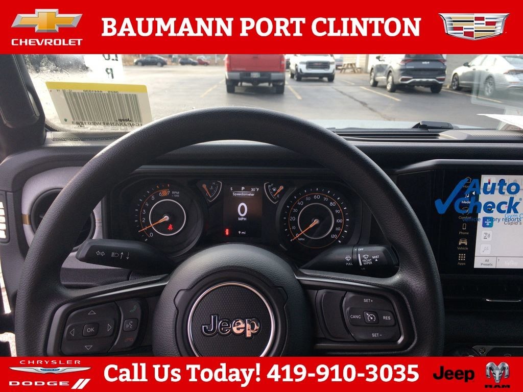 CALL 419- 732 -3148 or 419- 960- 4141, 12.3" Touchscreen Display, 3.45 Overall Top Gear Ratio, 4-Wheel Disc Brakes, 4G LTE Wi-Fi Hot Spot, 8 Speakers, ABS brakes, Air Conditioning, AM/FM radio: SiriusXM with 360L, Apple CarPlay, Apple CarPlay/Android Auto, Aux Battery, Brake assist, Cloth Low-Back Bucket Seats, Compass, Connectivity - US/Canada, Deep Tint Sunscreen Windows, Delay-off headlights, Driver door bin, Driver vanity mirror, Dual front impact airbags, Dual front side impact airbags, Electronic Stability Control, For More Info, Call 800-643-2112, Front anti-roll bar, Front Bucket Seats, Front Center Armrest w/Storage, Front fog lights, Front reading lights, Google Android Auto, Illuminated entry, Integrated Center Stack Radio, Integrated roll-over protection, Low tire pressure warning, MOPAR All-Weather Floor Mats, Mopar Black Fuel Filler Door, Non-Lock Fuel Cap Without Discriminator, Normal Duty Suspension, Occupant sensing airbag, Outside temperature display, Overhead airbag, Panic alarm, ParkView Rear Back-Up Camera, Passenger door bin, Passenger vanity mirror, Power steering, Power windows, Quick Order Package 22B Sport, Radio data system, Radio: Uconnect 5 with 12.3" Display, Rear anti-roll bar, Rear reading lights, Remote keyless entry, SiriusXM Radio Service, SiriusXM with 360L, Soft Top Window Storage Bag, Speed control, Steering wheel mounted audio controls, Stop-Start Dual Battery System, Tachometer, Telescoping steering wheel, Tilt steering wheel, Traction control, Trip computer, Variably intermittent wipers, Wheels: 17" x 7.5" Black Steel Styled.