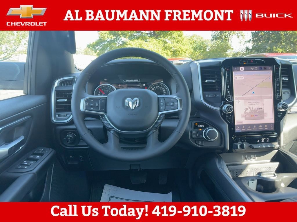115V Auxiliary Power Outlet, 115V Auxiliary Rear Power Outlet, 12" Touchscreen Display, 2nd Row in Floor Storage Bins, 3 Rear Seat Head Restraints, 33 Gallon Fuel Tank, 4 Way Front Headrests, 4-Wheel Disc Brakes, 400W Inverter, 48V Belt Starter Generator, 4G LTE Wi-Fi Hot Spot, 6 Speakers, 9 Amplified Speakers with Subwoofer, ABS brakes, Accent Color Door Handles, Accent Color Premium Power Mirrors, Accent Color Tailgate Handle, Air Conditioning, Air Conditioning ATC with Dual Zone Control, Alloy wheels, AM/FM radio, Anti-Spin Differential Rear Axle, Apple CarPlay, Apple CarPlay/Android Auto, Auto High-beam Headlights, Auto Power-Folding Mirrors, Auto-Dimming Exterior Driver Mirror, Auto-Dimming Rear-View Mirror, Big Horn Level 2 Equipment Group, Black Exterior Mirrors, Black Exterior Truck Badging, Black Headlamp Bezels, Black Interior Accents, Black Painted Exterior Mirrors Caps, Black Premium Power Mirrors, Black Tail Lamp Bezels, Body Color Fender Flares, Body Color Front Bumper, Body Color Rear Bumper with Step Pads, Brake assist, Bucket Seats, Bumpers: chrome, Center Console Parts Module, Cloth Bucket Seats, Cluster 7.0" TFT Color Display, Compass, Configurable Drive Mode, Connected Travel and Traffic Services, Connectivity - US/Canada, Convex Wide-Angle Exterior Mirror Insert, Delay-off headlights, Deluxe Cloth Bucket Seats, Disassociated Touchscreen Display, Driver door bin, Dual Exhaust with Black Tips, Dual front impact airbags, Dual front side impact airbags, Electronic Stability Control, Exterior Mirrors Courtesy Lamps, Exterior Mirrors with Heating Element, Exterior Mirrors with Supplemental Signals, Front anti-roll bar, Front Bucket Seats, Front Center Armrest w/Storage, Front fog lights, Front License Plate Bracket, Front reading lights, Front Seat Back Map Pockets, Front wheel independent suspension, Full Length Floor Console, Fully automatic headlights, Global Telematics Box Module, Glove Box Lamp, Google Android Auto, GPS Antenna Input, GPS Navigation, Grille Black Surround Black Mesh, HD Radio, Heated door mirrors, Heated Front Seats, Heated Steering Wheel, Illuminated entry, Integrated Center Stack Radio, Integrated Voice Command with Bluetooth, Leather Wrapped Steering Wheel, LED Dome Lamp with on/Off Switch, LED Footwell Lighting, Low tire pressure warning, Manual Adjust 4-Way Driver Seat, Manual Adjust 4-Way Front Passenger Seat, Manual Folding Exterior Mirrors, Media Hub with 2 Charge Only USBs, Mopar Black Tubular Side Steps, MOPAR Front and Rear Rubber Floor Mats, MyFlexCare Service Plan, Night Edition, Occupant sensing airbag, Outside temperature display, Overhead airbag, Overhead console, Overhead LED Lamps, Panic alarm, ParkView Rear Back-Up Camera, Passenger door bin, Passenger vanity mirror, Power 2-Way Driver Lumbar Adjust, Power Adjust 8-Way Driver Seat, Power Adjustable Pedals, Power door mirrors, Power steering, Power windows, Premium Overhead Console, Quick Order Package 27Z Big Horn, Radio data system, Radio: Uconnect 5 Navigation with 12.0" Display, Radio: Uconnect 5 W with 8.4" Display, RAM Grille Badge - Black, RAM Grille Badge - Chrome, Rear 60/40 Folding Seat, Rear anti-roll bar, Rear Center Armrest, Rear Power Sliding Window, Rear step bumper, Rear Wheelhouse Liners, Rear Window Defroster, Remote keyless entry, Remote Tailgate Release, Security Alarm, SiriusXM Radio Service, SiriusXM with 360L, Speed control, Steering Wheel Mounted Audio Controls, Sun Visors with Illuminated Vanity Mirrors, Supplier Part Tracking (J-1), Tachometer, Telescoping steering wheel, Tilt steering wheel, Traction control, Trailer Brake Control, Trip computer, Universal Garage Door Opener, USB Host Flip, Variably intermittent wipers, Voltmeter, Wheels: 20" x 9.0" Aluminum Painted Clad.