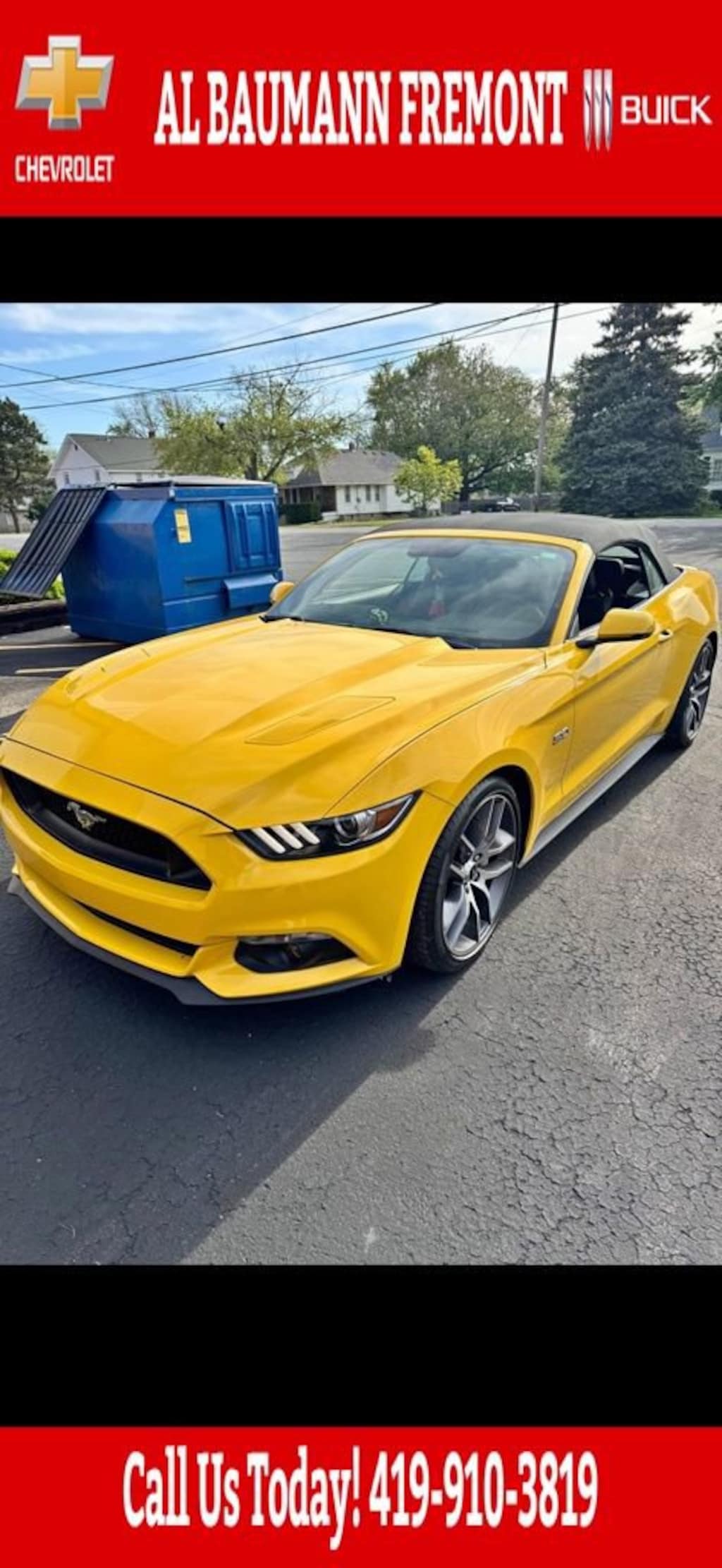 CALL,419-332-8236 or {1-866-330-3601}, Blind Spot Info System w/Cross-Traffic Alert, Convertible roof lining, Equipment Group 401A, HD Radio, Memory Driver Seat & Mirrors, Shaker Pro Audio System, Voice Activated Navigation, 3.55 Limited Slip Rear Axle, 4-Wheel Disc Brakes, 9 Speakers, ABS brakes, Adaptive Cruise Control w/Collision Mitigation, Air Conditioning, Alloy wheels, AM/FM radio: SiriusXM, Auto-dimming Rear-View mirror, Automatic temperature control, Block heater, Brake assist, Bumpers: body-color, CD player, Compass, Delay-off headlights, Driver door bin, Driver vanity mirror, Dual front impact airbags, Dual front side impact airbags, Electronic Stability Control, Exterior Parking Camera Rear, Four wheel independent suspension, Front anti-roll bar, Front Bucket Seats, Front Center Armrest, Front dual zone A/C, Front fog lights, Front reading lights, Fully automatic headlights, Garage door transmitter, Glass rear window, Heated door mirrors, Heated front seats, High-Intensity Discharge Headlights, Illuminated entry, Knee airbag, Leather Bucket Seats, Leather Shift Knob, Low tire pressure warning, Occupant sensing airbag, Outside temperature display, Panic alarm, Passenger door bin, Passenger vanity mirror, Power convertible roof, Power door mirrors, Power driver seat, Power passenger seat, Power steering, Power windows, Premium AM/FM Stereo w/Single CD Player, Radio data system, Rain-Sensing Wipers, Rear anti-roll bar, Rear window defroster, Remote keyless entry, Reverse Park Assist, Security system, SiriusXM Radio, Speed control, Speed-sensing steering, Speed-Sensitive Wipers, Spoiler, Steering wheel mounted audio controls, SYNC Communications & Entertainment System, Tachometer, Telescoping steering wheel, Tilt steering wheel, Traction control, Trip computer, Turn signal indicator mirrors, Variably intermittent wipers, Ventilated front seats, Voltmeter, Wheels: 18 x 8 Magnetic Painted/Machined, Wheels: 20 x 9 Foundry Black Painted Machined, Blind Spot Info System w/Cross-Traffic Alert, Convertible roof lining, Equipment Group 401A, HD Radio, Memory Driver Seat & Mirrors, Shaker Pro Audio System, Voice Activated Navigation.